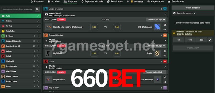 O 660bet oferece uma grande seleção de opções de apostas em e-sports com probabilidades competitivas